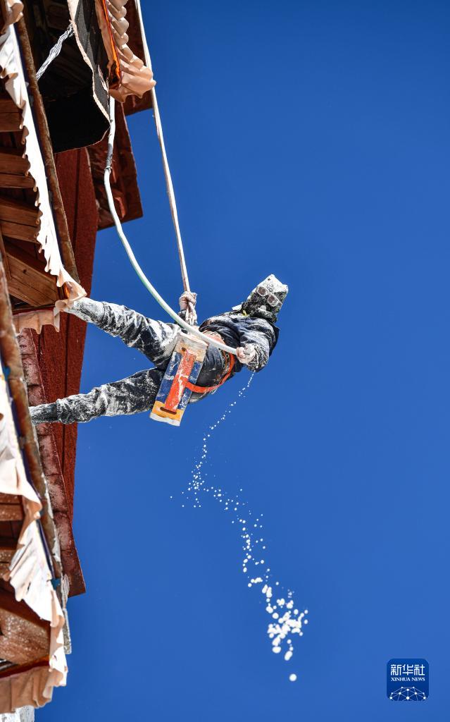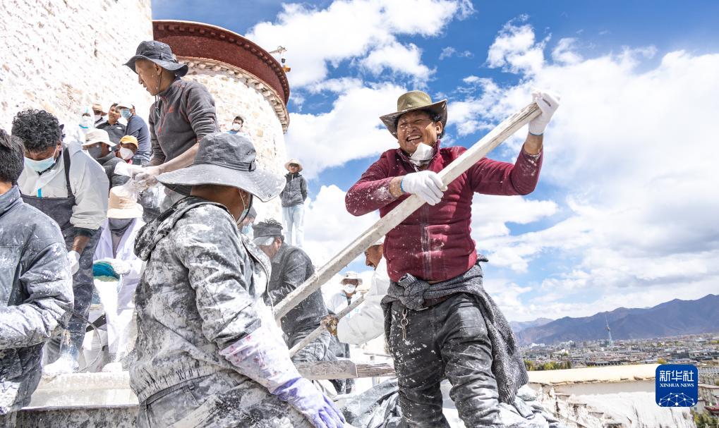 近日,西藏布達拉宮開始進行粉刷維護工作。為使經過一年日曬雨淋的紅墻白壁保持鮮亮光彩,每年秋冬交替時節(jié),布達拉宮外墻都要進行粉刷“美容”。