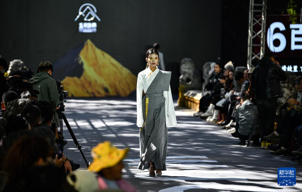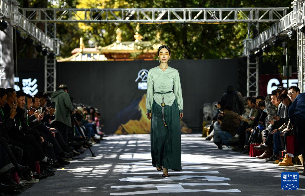 10月21日,模特在時裝發(fā)布會上展示創(chuàng)新藏裝。新華社記者 晉美多吉 攝