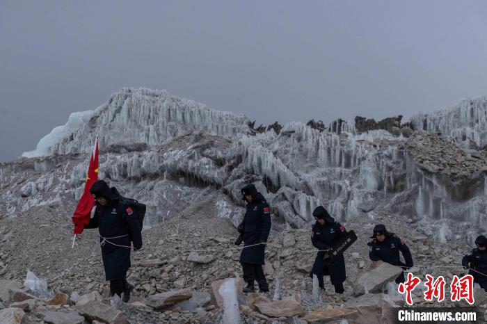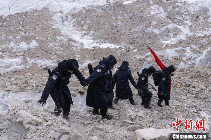 近日,西藏出入境邊防檢查總站普瑪江塘邊境派出所對(duì)轄區(qū)海拔5600米的崗布冰川(中不邊境)開(kāi)展第332次巡邏。