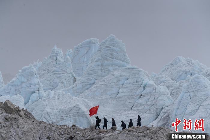 圖為普瑪江塘邊境派出所在海拔5600米的崗布冰川開(kāi)展邊境巡邏。蔣美靈 攝