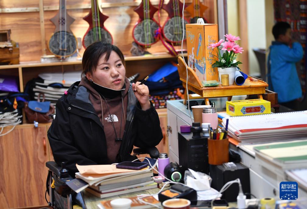 29歲的拉薩姑娘卓嘎因小兒麻痹落下殘疾,她在覺列的公司里學(xué)習(xí)了藏文書法,還成為拉薩八廓商城一個(gè)藏文書法和扎念琴體驗(yàn)班的負(fù)責(zé)人,最多的時(shí)候要為150名孩子授課?,F(xiàn)在她每月稅前收入有大約9000元。