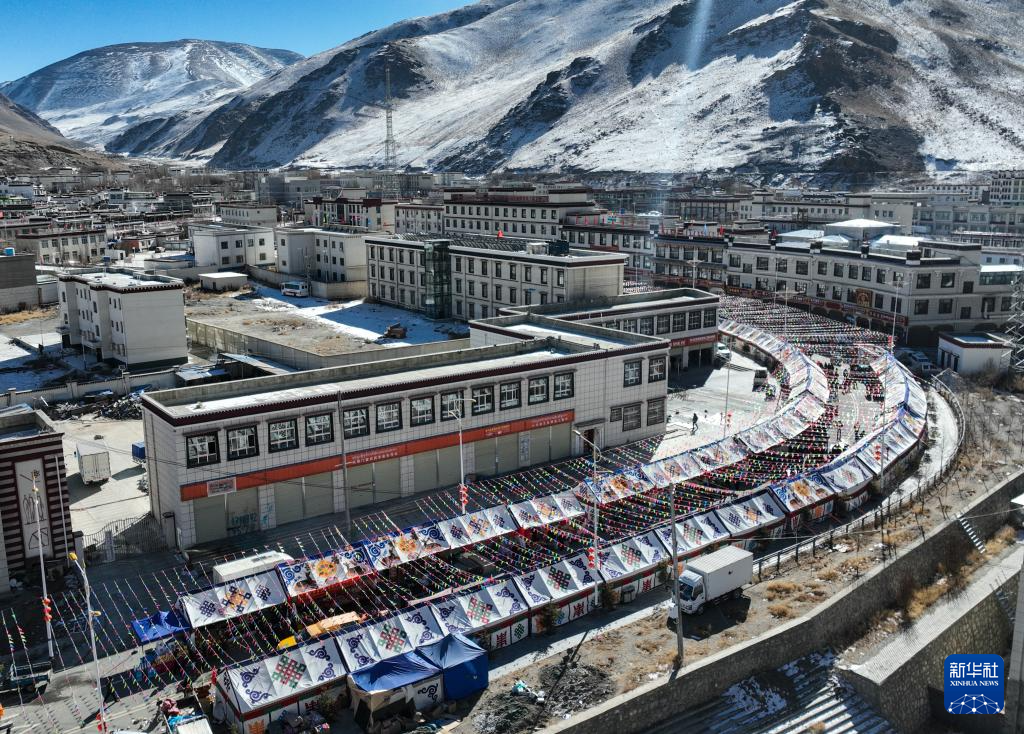 12月14日,西藏日喀則市康馬縣冬季物資文化交流會現(xiàn)場航拍(無人機照片)。新華社記者晉美多吉 攝