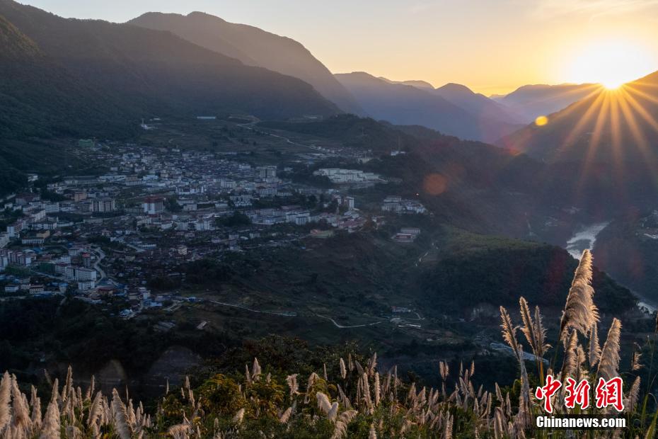 12月22日,雅魯藏布江云海與墨脫縣城。(無人機畫面)