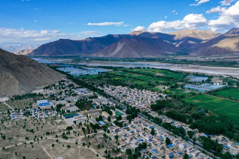 圖為鳥瞰西藏自治區(qū)曲水縣南木鄉(xiāng)江村。田金文攝