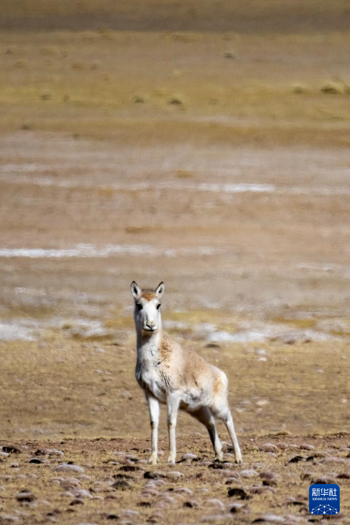 這是在色林錯湖畔拍攝到的藏羚羊(1月5日攝)。新華社記者 旦增尼瑪曲珠 攝