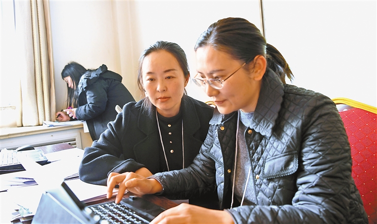 記者在兩會(huì)新聞中心趕稿。記者 洛桑 攝