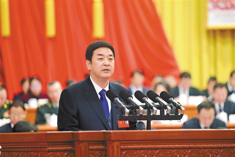 根據(jù)會(huì)議議程,自治區(qū)主席嚴(yán)金海代表自治區(qū)人民政府向大會(huì)作政府工作報(bào)告,報(bào)告共分兩部分:2023年工作回顧,2024年工作安排。
