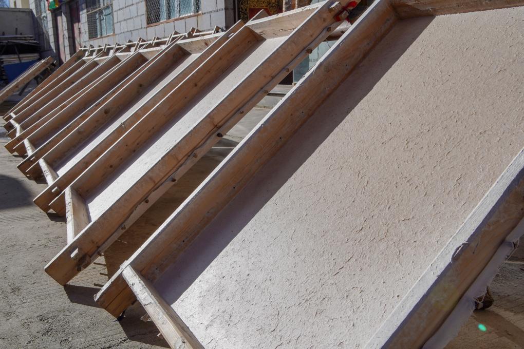 2023年12月5日拍攝的一排正在晾曬中的藏紙。新華社記者邵澤東攝