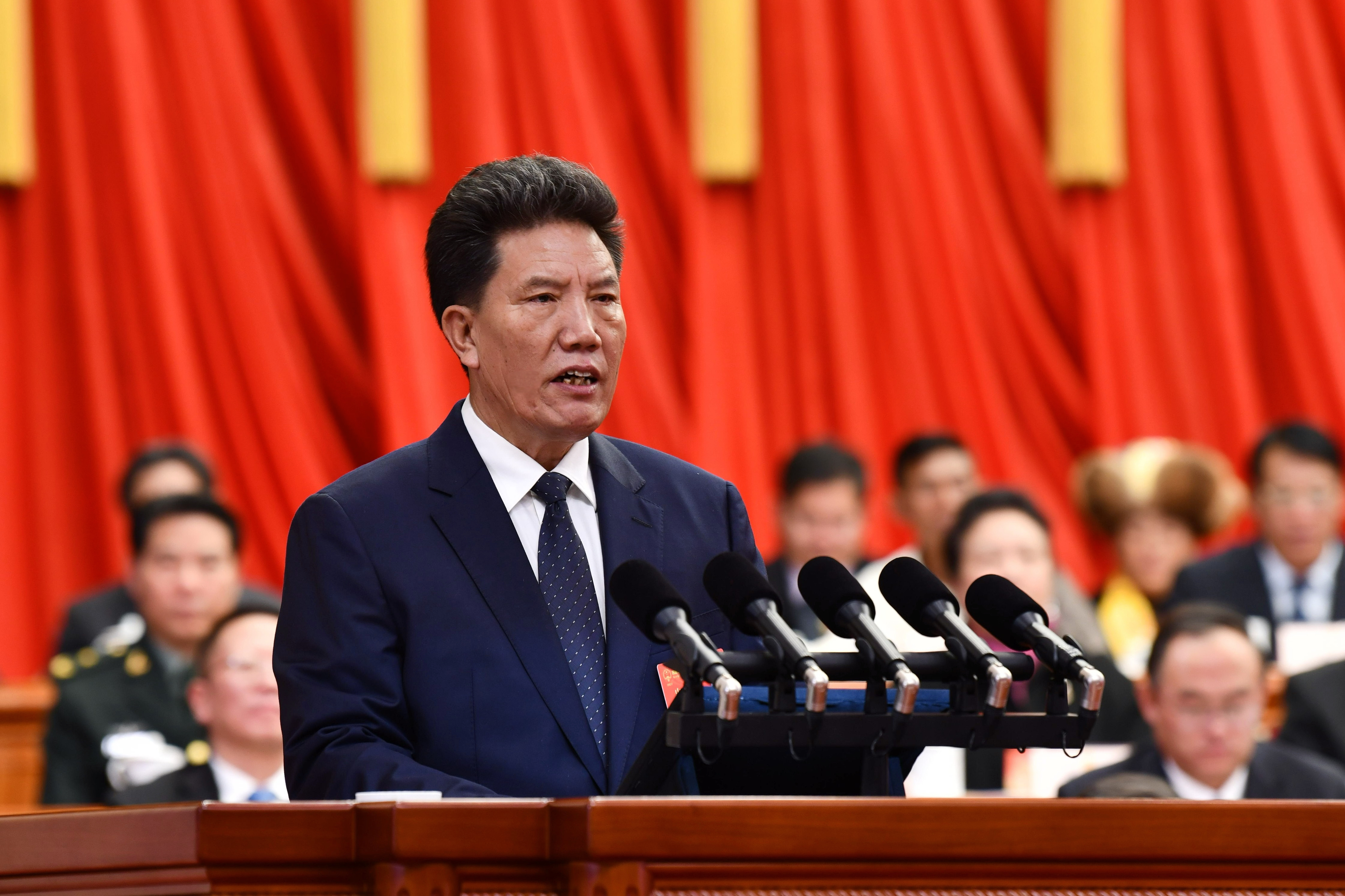 全國人大常委會副委員長、自治區(qū)人大常委會主任洛桑江村向大會作自治區(qū)人大常委會工作報(bào)告。記者 次仁平措 攝