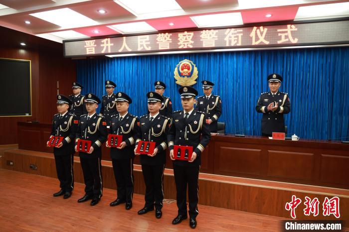 圖為亞?wèn)|出入境邊防檢查站組織開(kāi)展人民警察警銜晉升儀式。胡利媛 攝