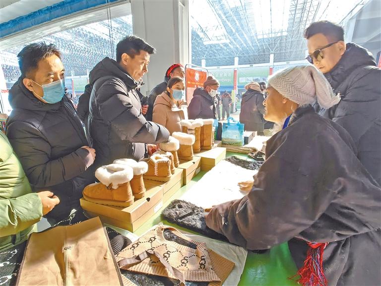 展位前,不少市民前來光顧,紛紛購買嘎措羊皮雪地靴。市民拉姆正在仔細挑選,她說:“之前是朋友推薦,在網(wǎng)上購買。穿著輕便暖和,時尚百搭,今天來再選購一雙,換著穿?!?/p>