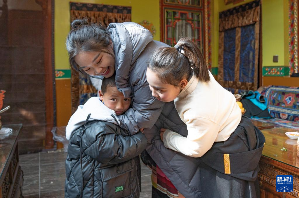 后來我們又去莫拉家拍攝了團(tuán)圓飯、換新藏裝等場景。拍攝時(shí),我需要穿藏裝和巴桑莫拉的女兒進(jìn)行互動,而當(dāng)天日喀則的氣溫已經(jīng)到了零下,她發(fā)現(xiàn)我的雙手冰涼后,全程都用自己的手捂著我的手,想讓我暖和一點(diǎn)。拍攝結(jié)束以后,小朋友們也圍在我身邊抱著我,想用自己的方式給我傳遞一點(diǎn)溫暖。