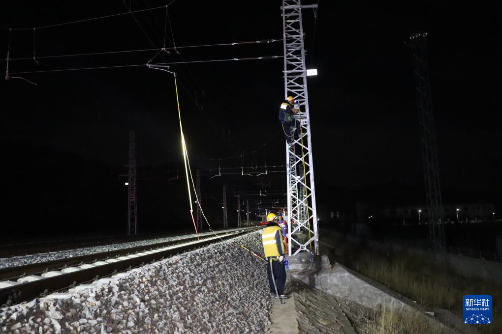 接觸網(wǎng)源源不斷地為電力火車提供電力,就像電氣化鐵路的“血管”?!拔覀兙褪歉咴姎饣F路的醫(yī)生,每天夜里,為它的‘血管’做一場細(xì)致的手術(shù),保證接觸網(wǎng)安全暢通?!崩罘e王說,細(xì)致的夜間作業(yè)確保了拉林鐵路在春運(yùn)期間能夠安全、高效地運(yùn)行。