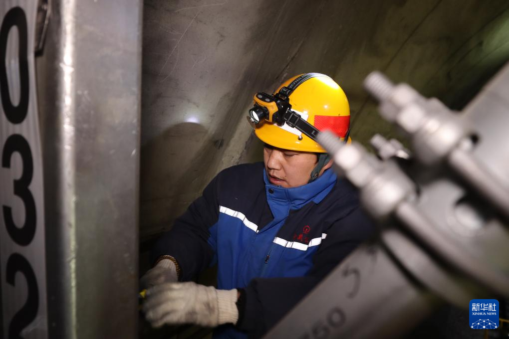 拉薩南接觸網(wǎng)維修隊工長對接觸網(wǎng)設(shè)備進(jìn)行檢修(1月24日攝)。新華社記者 劉洲鵬 攝