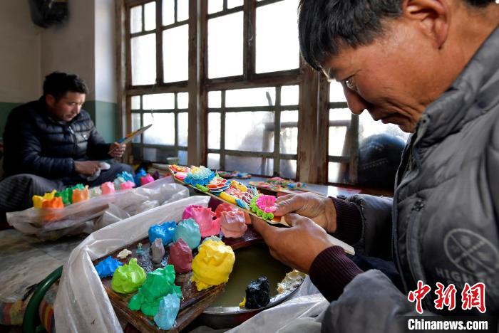 雙手被冷水泡得紅腫、雙腳一直盤腿而坐……制作過程固然辛苦,卻也讓米瑪一家收入頗豐?!爸谱鳌⑹圪u酥油花,每年人均有一萬元(人民幣,下同)左右的收入。這對于農(nóng)閑時的我們來說,還是很不錯的?!泵赚斦f,接下來他會教孫輩來制作酥油花,讓年輕一代慢慢學習了解、傳承這項技藝。