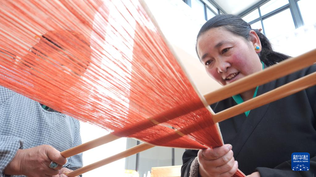 來自江孜縣江孜鎮(zhèn)的尼瑪普赤,在上海經(jīng)過專業(yè)培訓(xùn)后考試合格,目前從事“新式氆氌”編織已有三個多月。她說,自己此前在合作社做卡墊,但市場競爭激烈導(dǎo)致產(chǎn)品積壓,而“新式氆氌”在上海援藏幫助下打開了國際市場,合作社成員收入穩(wěn)步提高。