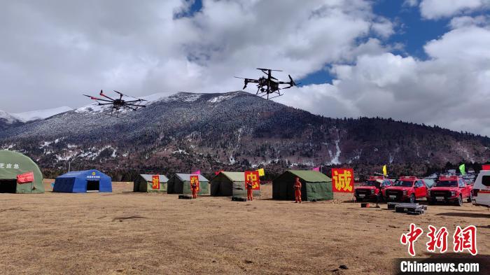 圖為拉練中開展無人機(jī)群編隊(duì)飛行訓(xùn)練。西藏林芝市森林消防支隊(duì)供圖