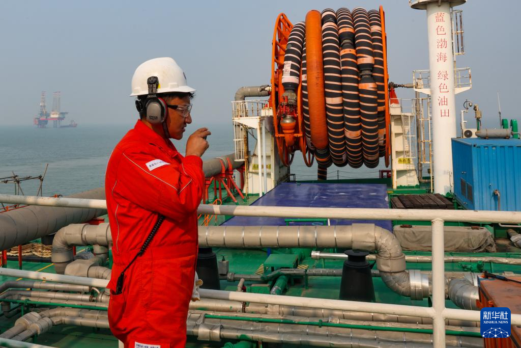 強巴在秦皇島32-6油田“渤海世紀號”(FPSO)16萬噸級浮式生產(chǎn)儲油裝置上(3月7日攝)。新華社記者 姜帆 攝