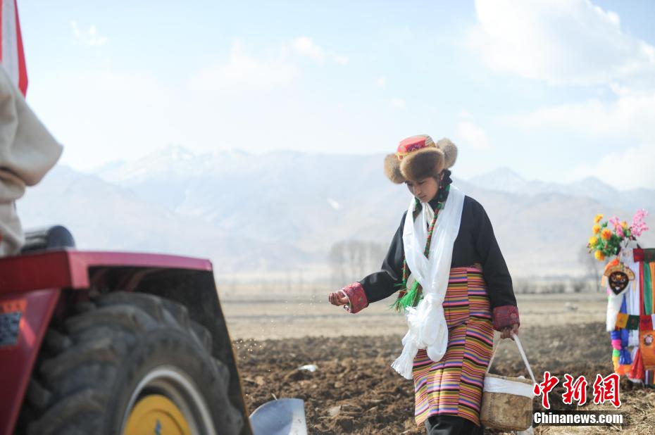 3月16日,西藏拉薩迎來一年一度盛大的傳統(tǒng)春耕儀式。當(dāng)日是藏歷正月二十四日,按照藏歷傳統(tǒng),是西藏農(nóng)區(qū)開耕的日子。林周縣村民身著節(jié)日盛裝,家家戶戶端著自家的“切瑪”(象征五谷豐登)帶著青稞酒、酥油茶等物品聚在田間,互敬青稞酒,開始撒種,祈求全年風(fēng)調(diào)雨順、五谷豐登。貢嘎來松 攝