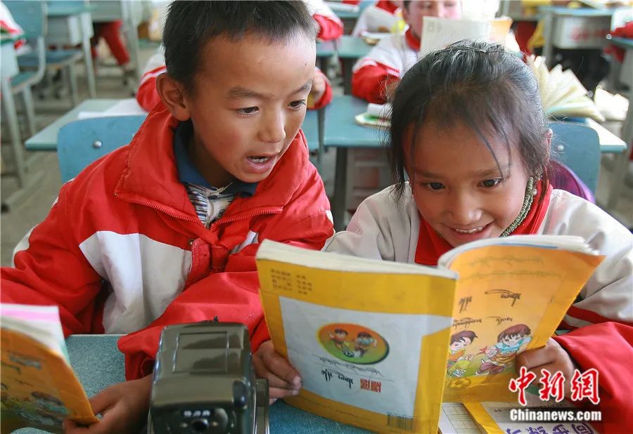 西藏日喀則市上海實(shí)驗(yàn)學(xué)校的課堂上,孩子們在朗讀課文。張學(xué)軍 攝