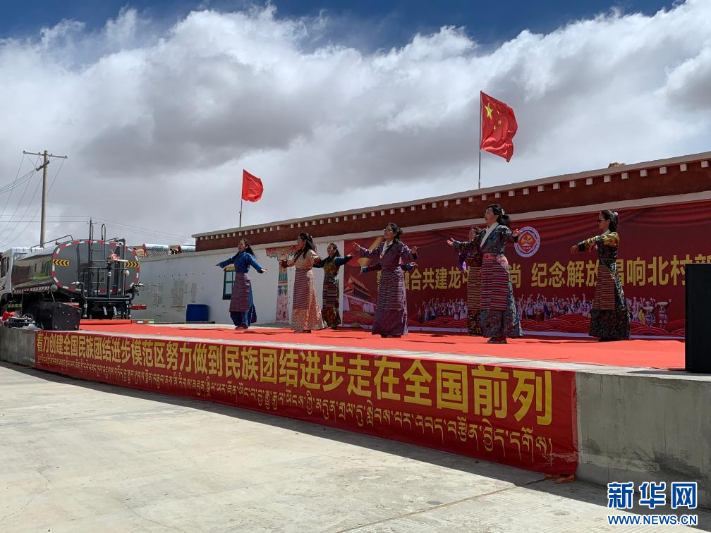 龍中鄉(xiāng)干部群眾一齊舞蹈歌唱新時代。