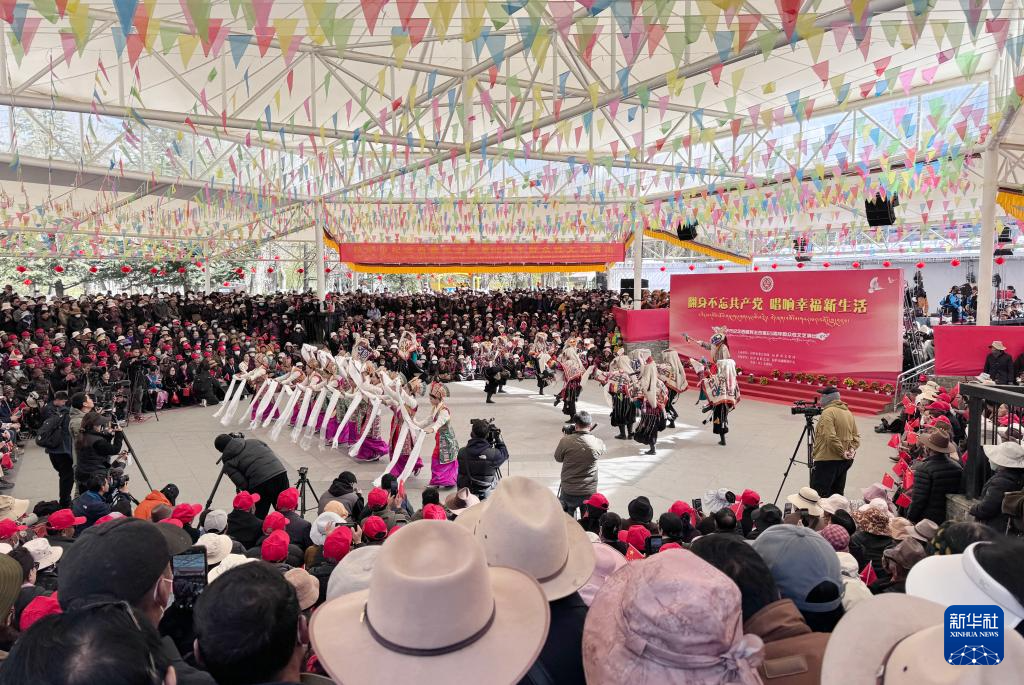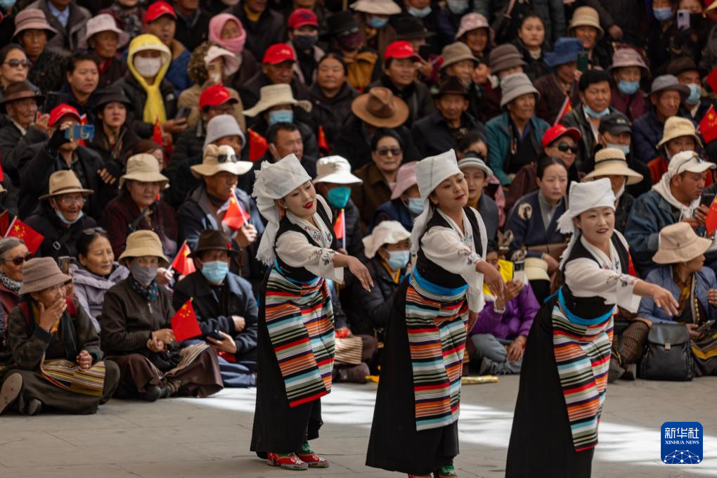 3月28日,群眾在拉薩市宗角祿康公園內(nèi)觀看文藝演出,慶祝西藏百萬(wàn)農(nóng)奴解放65周年。新華社記者 姜帆 攝