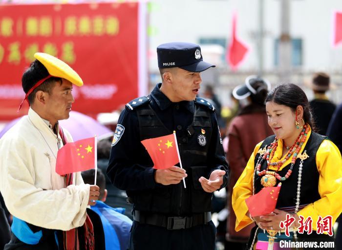 28日,西藏自治區(qū)日喀則市吉隆出入境邊防檢查站移民管理警察與駐地各單位干部職工及當?shù)孛癖姽餐_展系列活動紀念西藏民主改革65周年。