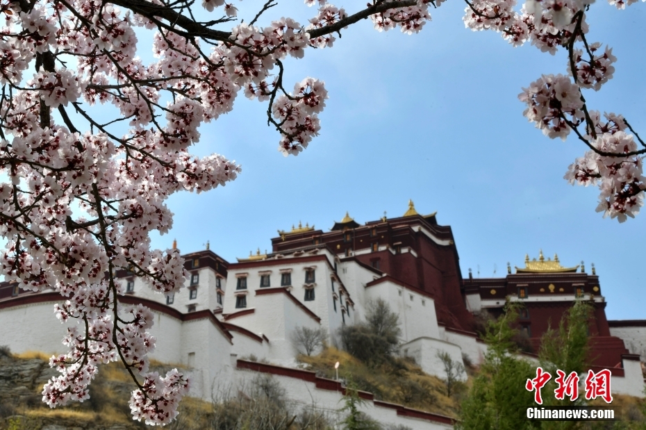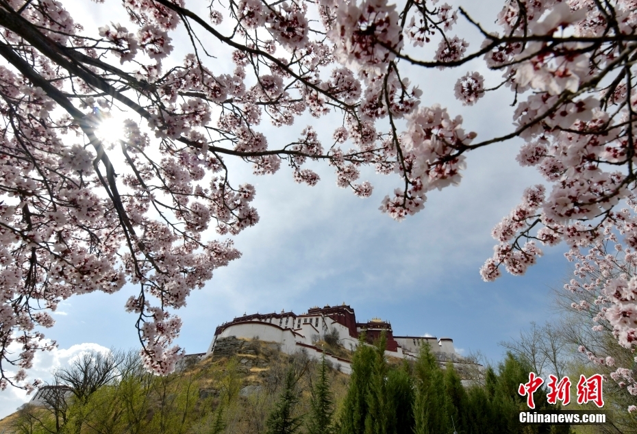 4月6日,西藏拉薩布達(dá)拉宮腳下春花綻放,與布達(dá)拉宮相互映襯。中新社記者 李林 攝