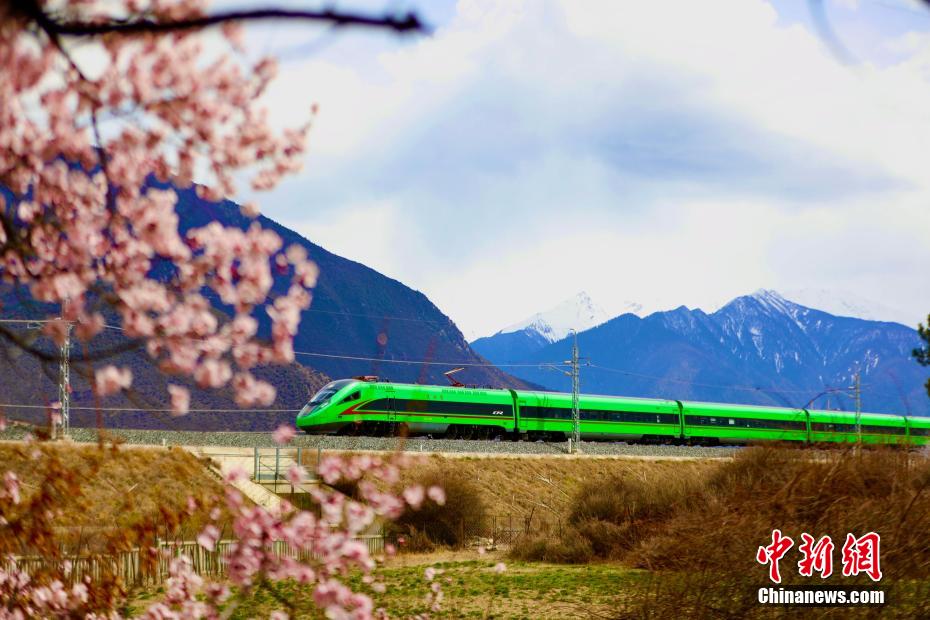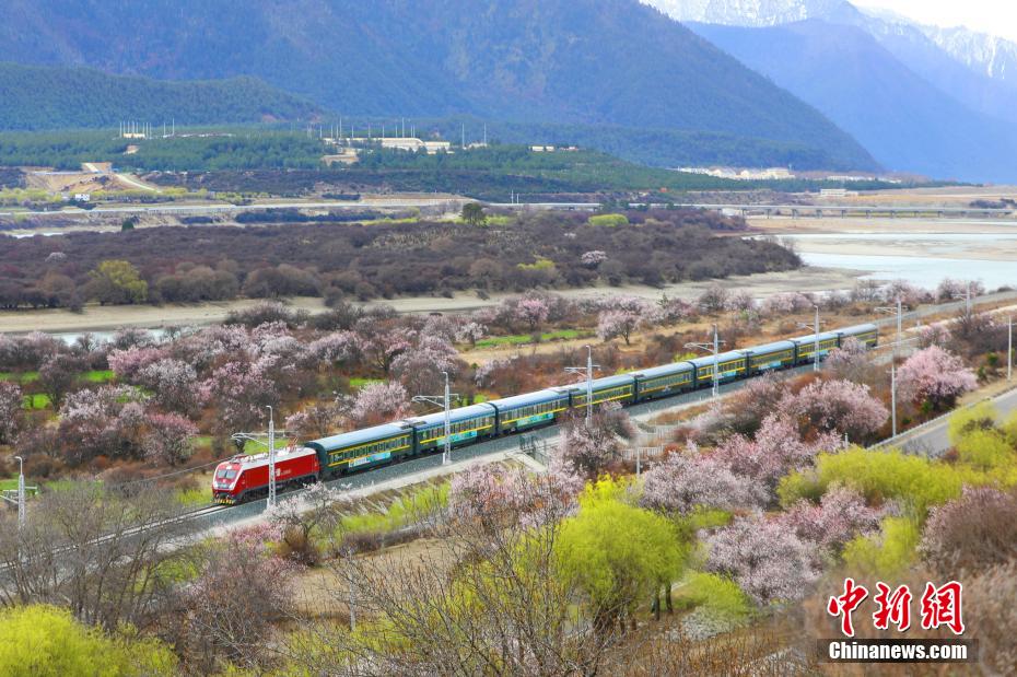 四月伊始,拉林鐵路沿線的桃花迎來了盛開時節(jié),藍天白云下,一朵朵桃花漲紅了臉頰,與遠處的雪山交相輝映,吸引了不少游客來感受高原春天的獨特魅力。當一列列火車穿過花海,映入眼簾的皆是滿山遍野的桃花,讓人仿佛置身于秀美的江南之中。圖為拉林鐵路沿線桃花盛開。馬生明 攝