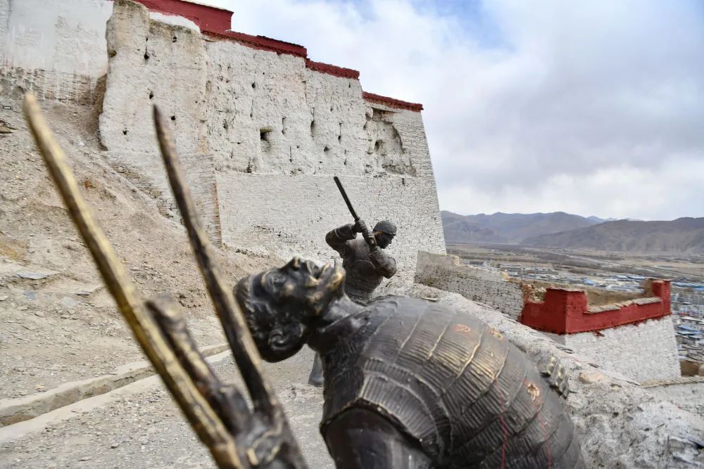 江孜宗山古堡上展現當年抗英戰(zhàn)斗的雕塑(晉美多吉 攝)