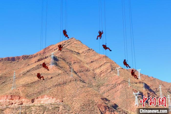 比賽現(xiàn)場,消防員運(yùn)用一對一掛接救援技術(shù)將被困者安全下放至地面。姚天銳 攝