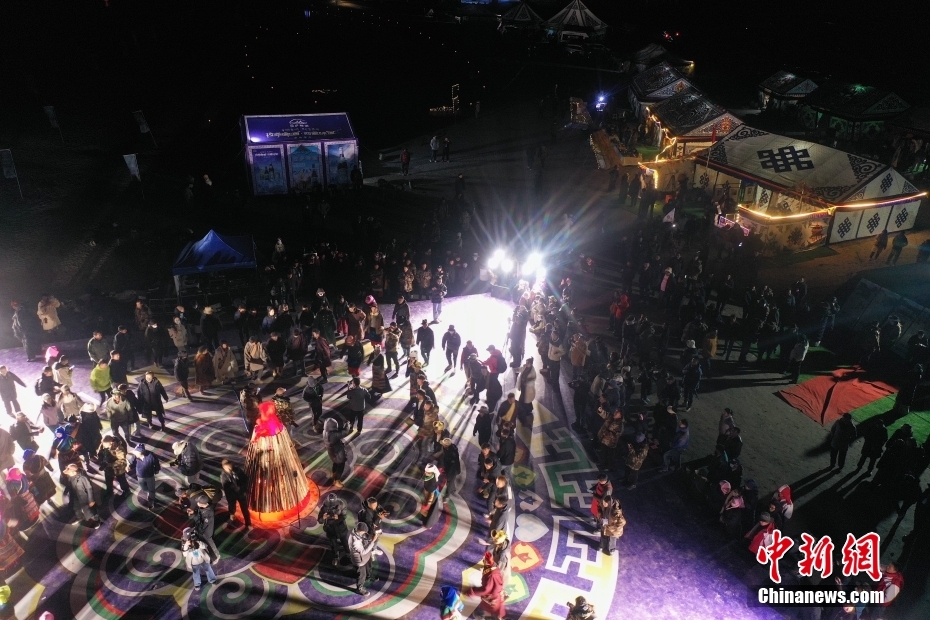 牧民帶游客體驗篝火鍋莊舞現(xiàn)場。中新社記者 貢嘎來松 攝