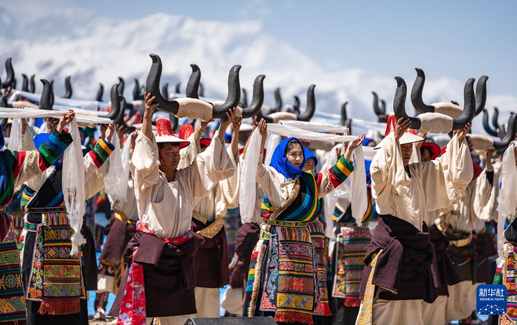 舞蹈演員在納木錯開湖活動現(xiàn)場表演(5月19日攝)。新華社記者 丁增尼達(dá) 攝