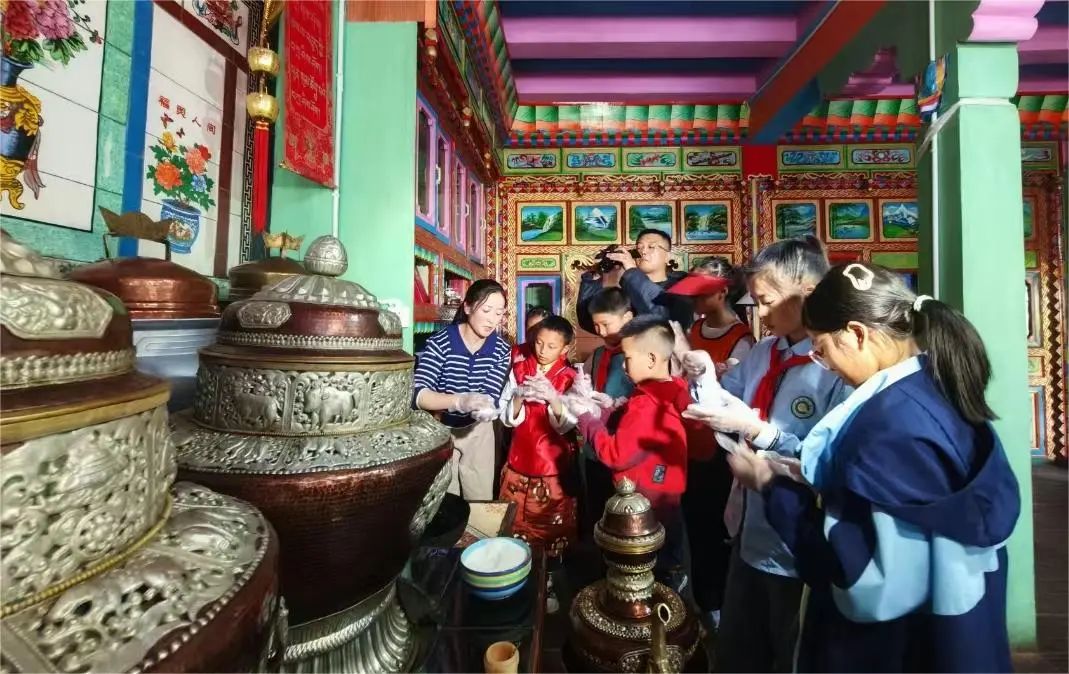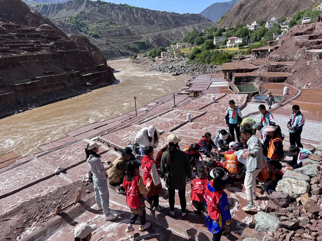 活動中,各地少先隊員代表一同走進青稞田地、古鹽田、鹽井宗解放委員會舊址等地,參加了“認識青稞”種植文化交流、“感知井鹽”制作技藝體驗、“紅色鹽井”尋訪鄉(xiāng)村發(fā)展變化等豐富多彩的項目,沉浸式、體驗式感受西藏新農(nóng)村建設和民風民俗,在互學互鑒中增進理解、收獲友誼、共同成長。