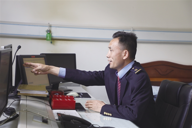“這里的工作雖然看似單調(diào),實則責(zé)任很大?!辟R文貴身穿深藍色的鐵路制服,胸前佩戴著亮閃閃的工牌,顯得精神抖擻。他像一名嚴謹?shù)膽?zhàn)士,緊盯著操作臺,確認信號,口呼手指?!∽鳛檐囌局蛋鄦T,賀文貴每天的任務(wù)主要是監(jiān)視列車進路和區(qū)間動態(tài),保證行車安全。工作中的他認真負責(zé),嚴格執(zhí)行標(biāo)準化作業(yè),他常說:即使單人值守,該有的程序、作業(yè)步驟一項都不少,作業(yè)標(biāo)準必須嚴格執(zhí)行,保證作業(yè)安全。