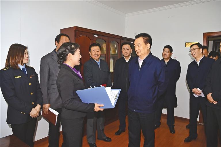 5月29日上午,自治區(qū)黨委書記王君正前往自治區(qū)市場(chǎng)監(jiān)督管理局、自治區(qū)商務(wù)廳等單位調(diào)研。這是王君正在自治區(qū)市場(chǎng)監(jiān)督管理局詳細(xì)了解12315互聯(lián)網(wǎng)平臺(tái)運(yùn)行、創(chuàng)新智慧監(jiān)管等情況。本報(bào)記者 旦增西旦 攝