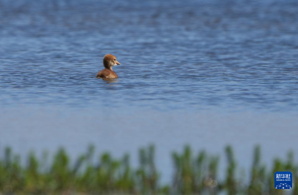 這是6月9日在西藏那曲市申扎縣一處濕地拍攝的黑頸鶴雛鳥(niǎo)。新華社記者 姜帆 攝