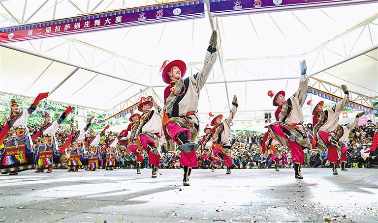 圖為第二屆拉薩鍋莊舞大賽現(xiàn)場。