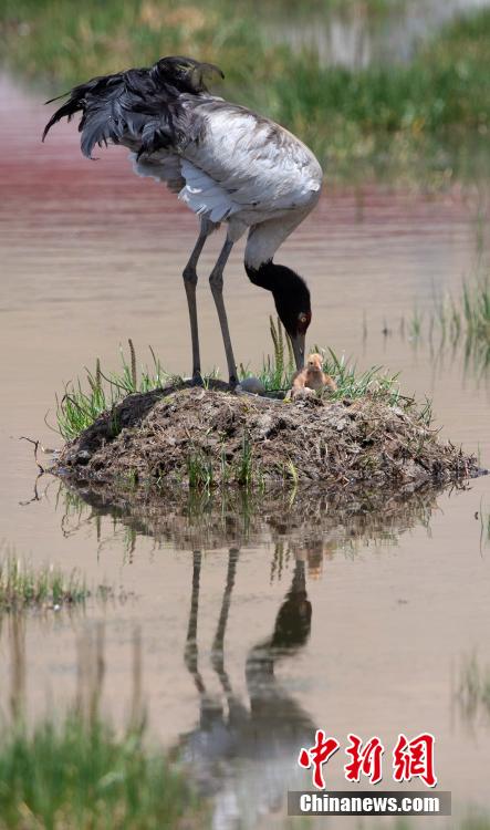 6月16日,在海拔4700米的西藏那曲市申扎縣,經(jīng)過34天的漫長孵化期,一對黑頸鶴夫婦終于等來了自己的小黑頸鶴成功破殼出生。值得一提的是,黑頸鶴寶寶的誕生日也是2024年的父親節(jié),黑頸鶴父親在節(jié)日當(dāng)天喜獲最珍貴的禮物。據(jù)悉,黑頸鶴每窩通常產(chǎn)卵1-2枚,孵化期通常要33到35天。中新社記者 貢嘎來松 攝
