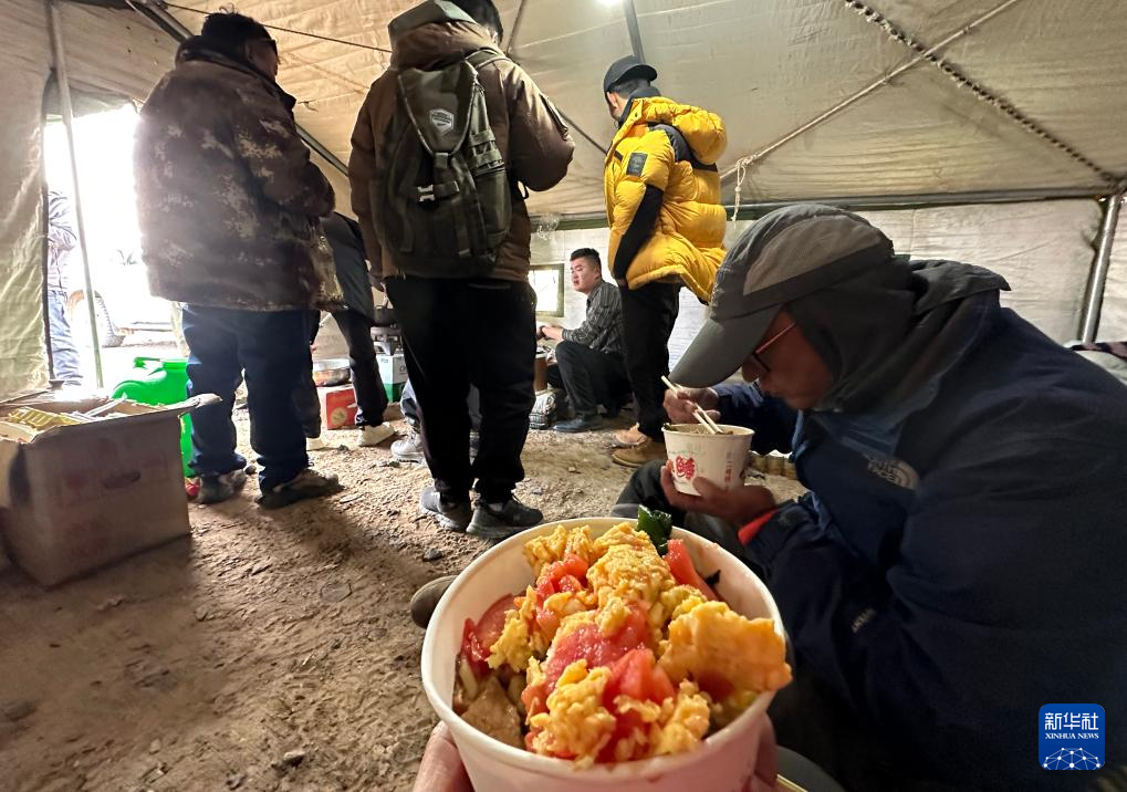 6月13日,記者在享用帳篷里的晚餐。新華社記者 費(fèi)茂華 攝