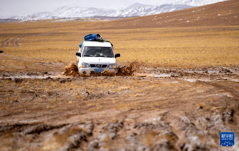 5月10日,野生動物專業(yè)管護(hù)隊員的車子在巡護(hù)路上穿越泥濘路段。新華社記者 姜帆 攝