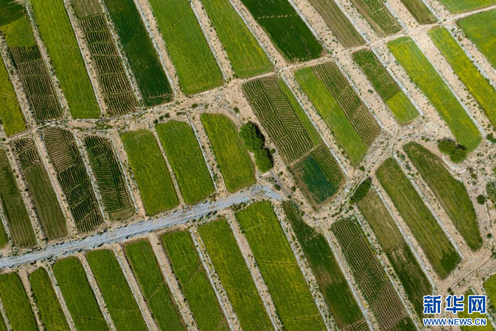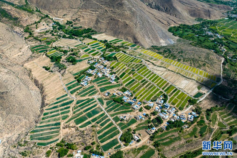 6月23日在西藏山南市乃東區(qū)境內(nèi)拍攝的田園風(fēng)光(無人機照片)。新華網(wǎng) 旦增努布 攝