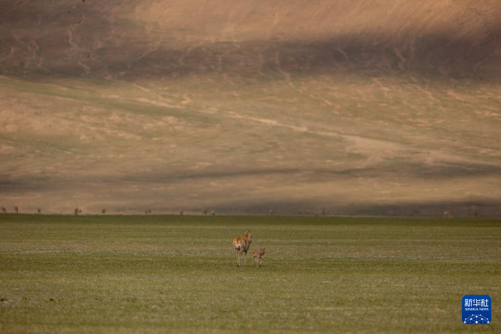 這是在那曲市申扎縣拍攝的藏羚羊(6月16日攝)。新華社記者 晉美多吉 攝