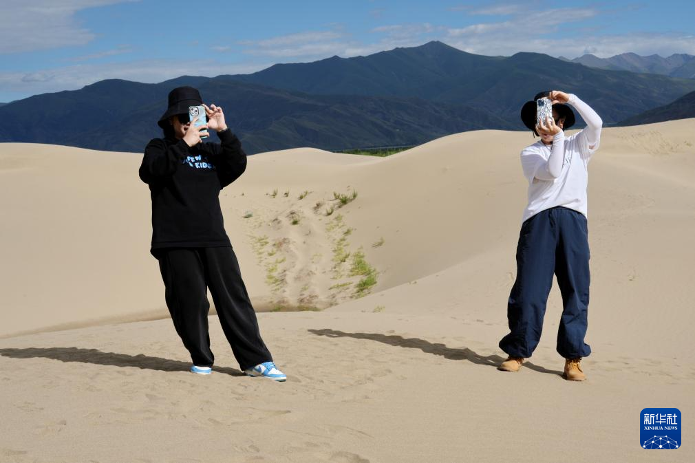游客在扎囊國家沙漠公園里拍照(7月30日攝)。新華社記者 張汝鋒 攝