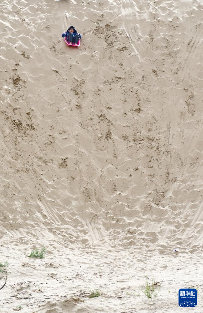 小朋友在扎囊國家沙漠公園里滑沙(7月30日攝)。新華社記者 張汝鋒 攝