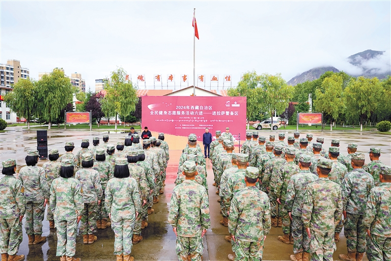 圖為近日,西藏自治區(qū)體育局及體育總會干部職工走進(jìn)駐藏某部,開展全民健身志愿服務(wù)“六進(jìn)”暨送體育進(jìn)部隊(duì)活動。這是活動現(xiàn)場。通訊員 梁康 記者 唐斌 攝