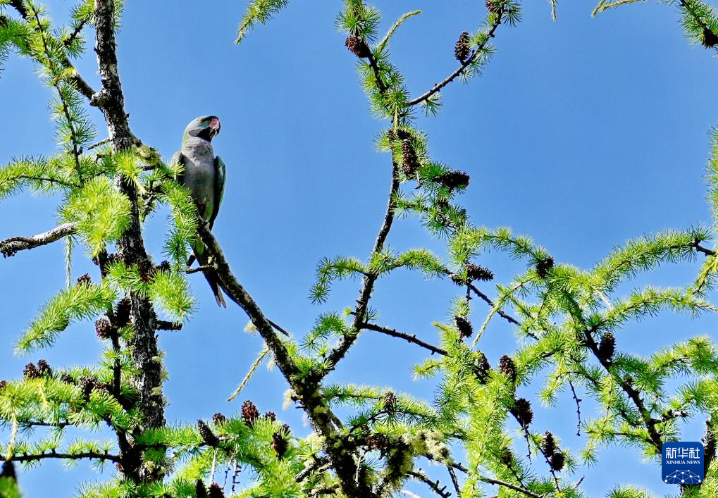 棲息在巴松措旅游風景區(qū)內(nèi)的大紫胸鸚鵡(8月2日攝)。新華社記者 張汝鋒 攝