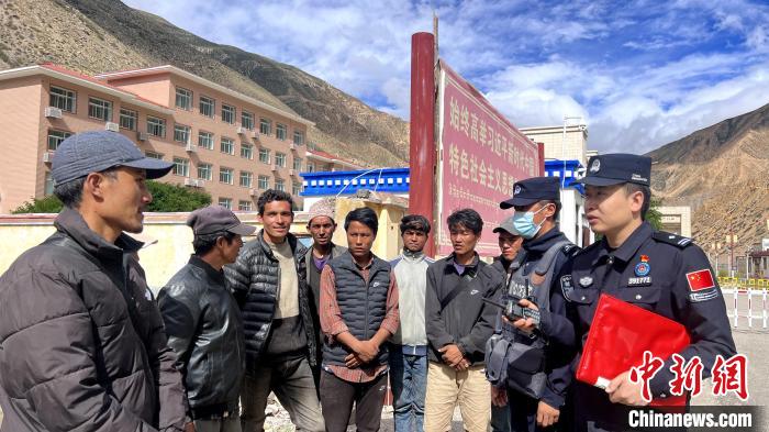 圖為普蘭邊檢民警向中尼邊民普及防災(zāi)防汛知識。鐘悅祺 攝