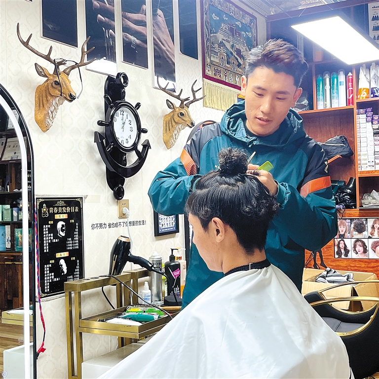 “這些年,隨著家鄉(xiāng)越來越繁榮,群眾生活水平不斷提高,大家也更加注重形象,對‘美’有了更高的追求?!苯?jīng)過自己的觀察思考和對家鄉(xiāng)的深入了解,巴桑加措覺得家鄉(xiāng)的理發(fā)行業(yè)還是一片“藍(lán)?!保熬胺浅:?。