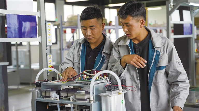 與巴桑有著相似經(jīng)歷的西藏山南籍大學(xué)生西落2023年入職西藏清匠電器科技有限公司,通過自己不斷努力,很快適應(yīng)了崗位工作,現(xiàn)在已經(jīng)是公司車間部組長。西落告訴記者,在公司能學(xué)到很多實(shí)實(shí)在在的技能,而且福利待遇很好,除了固定收入以外,公司每月組織員工集體生日會(huì),還設(shè)立了員工娛樂區(qū)、健身區(qū)等,工作環(huán)境和氛圍都很好。